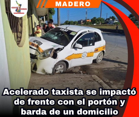 Un taxista que se desplazaba con evidente exceso de velocidad, perdió el control de su vehículo y terminó estrellándose de frente contra el portón y parte de la barda de un domicilio.