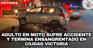 Adulto en moto sufre accidente y termina ensangrentado en Ciudad Victoria