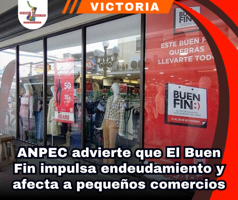 Ciudad Victoria, Tamaulipas.–La Alianza Nacional de Pequeños Comerciantes (ANPEC) advirtió que El Buen Fin promueve una cultura de consumo basada en el endeudamiento y las compras por impulso, lo que termina afectando a los hogares y al pequeño comercio, al señalar que “no todo lo que brilla es oro”.