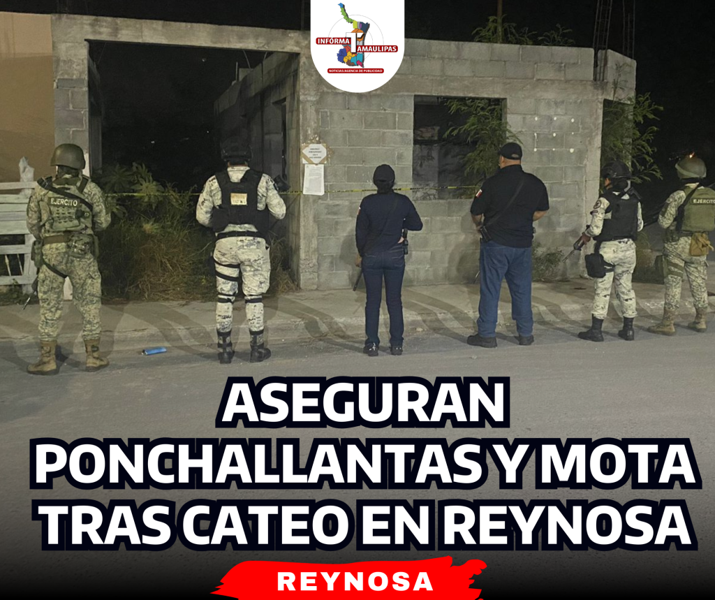 Aseguran ponchallantas y mota tras cateo en Reynosa
