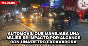 Automóvil que manejaba una mujer se Impactó por alcance con una retro-excavadora