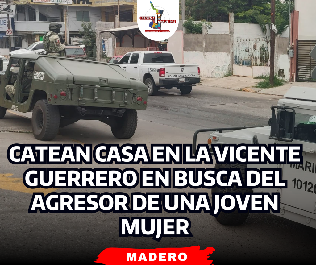 Elementos de la Fiscalía General de Justicia con apoyo de personal de la Secretaría de Marina y de la Guardia Estatal, catearon esta mañana una vivienda de la colonia Vicente Guerrero en Ciudad Madero, relacionada con la agresión que sufrió hace días una joven mujer a manos de un familiar.