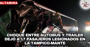 Choque entre autobús y trailer dejó a 17 pasajeros lesionados en la Tampico-Mante