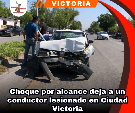 Ciudad Victoria, Tamaulipas. – Un conductor resultó lesionado tras un choque por alcance ocurrido en la Avenida de la Unidad con Patriotismo, a la entrada de la colonia Integración Familiar.