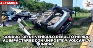 La unidad derrapó y terminó volcada en ub área verde, resultando con severas lesiones el tripulante que fue auxiliado por brigadistas de Cruz Ambar y Bomberos Voluntarios de Tamaulipas, para finalmente a bordo de una ambulancia de la primera corporación ser canalizado al Hospital General de Tampico, mientras que elementos de tránsito se encargaron de tomar conocimiento del percance .