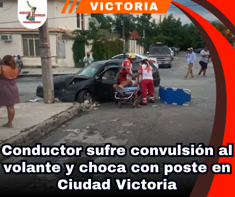 Ciudad Victoria, Tamaulipas. – Un hombre sufrió una crisis convulsiva mientras conducía su vehículo, lo que provocó que perdiera el control y se impactara contra un poste de concreto en el cruce de las calles Hernán Cortés y República de Chile, en la colonia Pedro Sosa.
