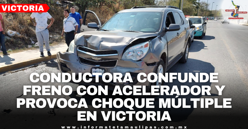 Ciudad Victoria, Tamaulipas. – Una conductora resultó lesionada esta tarde luego de provocar un choque múltiple en el que se vieron afectados cuatro vehículos, tras confundir el freno con el acelerador, en el Bulevar López Portillo.