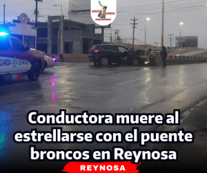 Conductora muere al estrellarse con el puente broncos en Reynosa