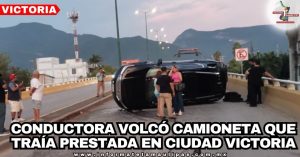 Conductora volcó camioneta que traía prestada en Ciudad Victoria