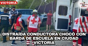 Distraída conductora chocó con barda de escuela en Ciudad Victoria