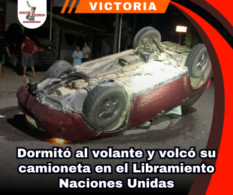 Ciudad Victoria, Tamaulipas. – Un conductor resultó lesionado luego de que dormitó al volante, chocó contra una jardinera y volcó su camioneta durante la madrugada de este miércoles.
