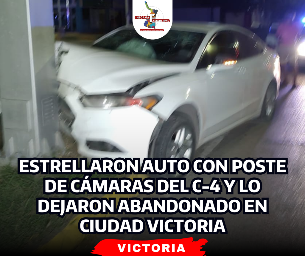 Estrellaron auto con poste de cámaras del C-4 y lo dejaron abandonado en Ciudad Victoria