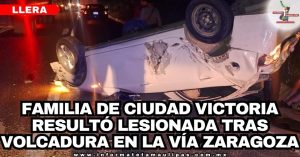 Familia de Ciudad Victoria resultó lesionada tras volcadura en la vía Zaragoza