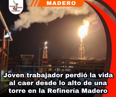 Dramático accidente laboral se registró la tarde del jueves en la refinería Francisco I Madero, al perder la vida joven trabajador de una compañía que cayó de una torre dentro de un recipiente con agua.