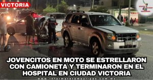 Jovencitos en moto se estrellaron con camioneta y terminaron en el hospital en Ciudad Victoria