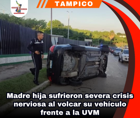 Madre e hija resultaron con severa crisis nerviosa al volcar el automóvil en el que viajaban a considerable velocidad, tras perder el control del volante la conductora en una curva y derrapar sobre pavimento mojado.