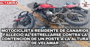 Motociclista residente de Canarios falleció al estrellarse contra la contención de un poste a la altura de Velamar