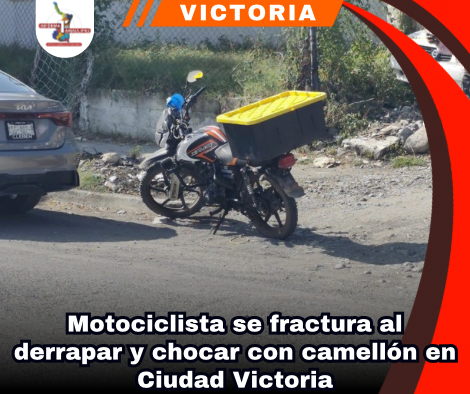 Ciudad Victoria, Tamaulipas. -Un repartidor resultó con una probable fractura de tibia luego de derrapar y estrellarse contra un camellón en la colonia Azteca de esta capital.