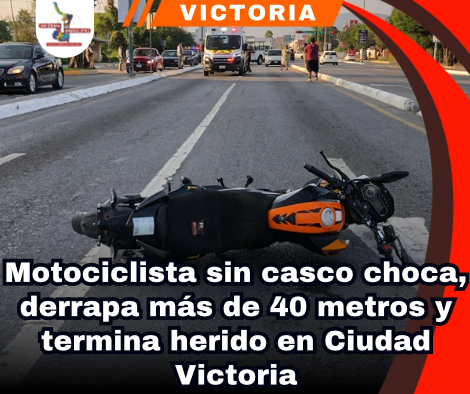 Ciudad Victoria, Tamaulipas.- Un motociclista que no portaba casco resultó con lesiones de consideración al chocar entre vehículos y derrapar sobre el pavimento, la mañana de este martes en el bulevar Tamaulipas.