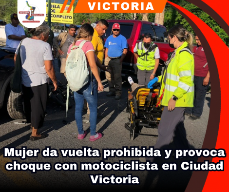 Ciudad Victoria, Tamaulipas.– Un motociclista resultó lesionado tras impactarse contra una camioneta que realizó una vuelta prohibida en la calzada General Luis Caballero, la mañana de este lunes.