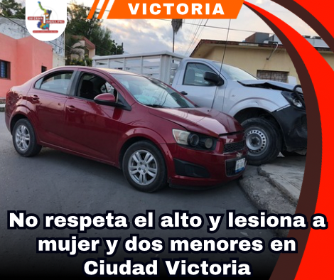 Ciudad Victoria, Tamaulipas.- Tres personas, entre ellas una mujer y dos menores de edad, resultaron lesionadas luego de que el conductor de una camioneta Nissan tipo estaquitas no respetara la señal de alto en el cruce de las calles Cinco y Allende, en el centro de la ciudad.