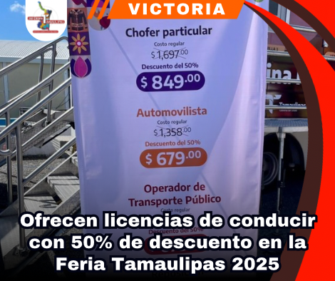 Ciudad Victoria, Tamaulipas.– En el marco de la Feria Tamaulipas 2025, el Gobierno del Estado, a través de la Secretaría de Finanzas, instaló un módulo móvil para la expedición y renovación de licencias de conducir con un descuento del 50 por ciento.