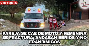 Ciudad Victoria, Tamaulipas. –Una pareja que viajaba a bordo de una moto sufrió una caída y la mujer resultó con fractura de una pierna, pero cuando la ambulancia se la llevó, el masculino se desafanó.