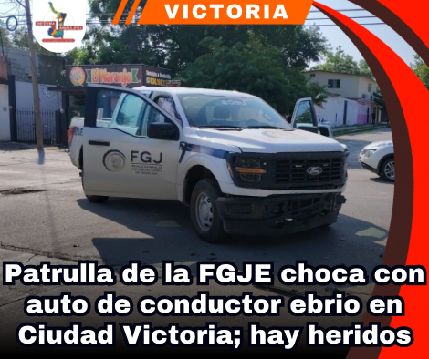 Ciudad Victoria, Tamaulipas.– Esta mañana, una patrulla de la Fiscalía General de Justicia del Estado (FGJE), adscrita a la unidad de combate al secuestro, se vio involucrada en un accidente con un automóvil cuyo conductor no respetó el alto en el crucero del 28 Berriozábal y circulaba presuntamente en estado de ebriedad.