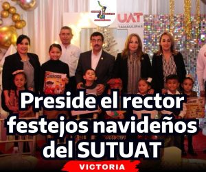 En los eventos que presidió el rector Dámaso Anaya Alvarado acompañado de su esposa, Isolda Rendón de Anaya, presidenta de Familia UAT, se ofreció un espacio de convivencia para las trabajadoras y trabajadores universitarios, así como para sus pequeños hijos que disfrutaron de un emotivo festival infantil, golosinas y regalos.