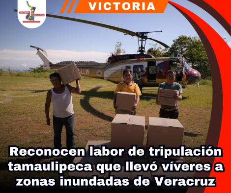 Ciudad Victoria, Tamaulipas.– El capitán y su auxiliar del helicóptero del Gobierno de Tamaulipas se ganaron el reconocimiento por su destacada labor al trasladar víveres a comunidades afectadas por las recientes inundaciones en Veracruz.