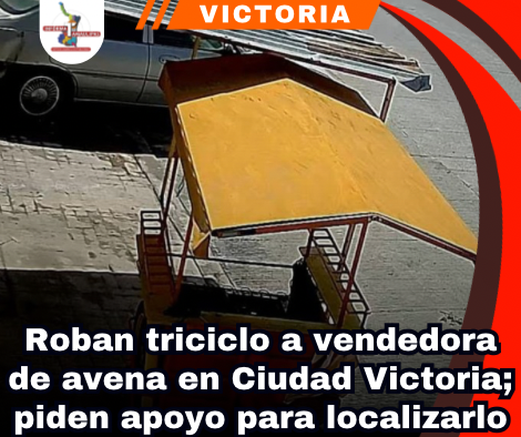 Ciudad Victoria, Tamaulipas.– Un triciclo utilizado para la venta de avena fue robado durante la madrugada de este jueves en la zona del Parque Lineal, entre la avenida 16 de Septiembre y la avenida Revolución.