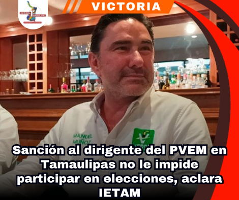 Ciudad Victoria, Tamaulipas.– La sanción impuesta por el Consejo General del Instituto Electoral de Tamaulipas (IETAM) al dirigente estatal del Partido Verde Ecologista de México (PVEM), Manuel Muñoz Cano, no le impide contender por un cargo de elección popular, informó Marcia Laura Garza Robles, presidenta de la Comisión de Procedimientos Administrativos Sancionadores.