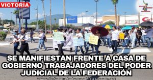 Un grupo de trabajadores del Poder Judicial de la Federación se trasladaron frente a la Casa de Gobierno para solicitar audiencia con el gobernador de Tamaulipas Américo Villarreal Anaya y exponerle directamente lo que representa una Reforma Judicial como la presentada por el ejecutivo Federal.