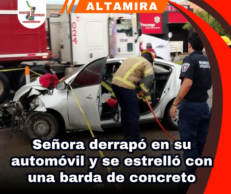 La velocidad con que circulaba y lo mojado el pavimento, ocasionaron que se estrellara de frente contra una barda de concreto quedando atrapada dentro de la unidad, por lo que fue necesario rescatarla con equipo hidráulico para posteriormente canalizarla a un hospital, en tanto el área quedó acordonada a fin que el personal vial procediera a tomar conocimiento de los hechos y retirar la unidad colisionada.