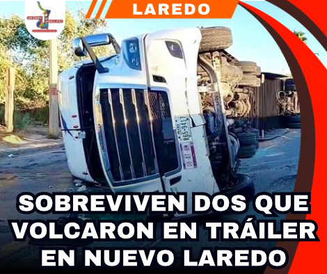 Nuevo Laredo, Tamaulipas.- Dos hombres que viajaban en un tráiler de carga lograron sobrevivir con lesiones leves a una espectacular volcadura registrada la mañana de este domingo en la Carretera Nacional, a la altura del Kilómetro 12.