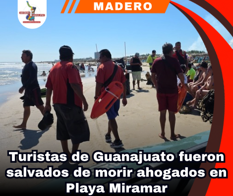 Rescatistas de Protección Civil que mantienen vigilancia en Playa Miramar de Ciudad Madero, salvaron de morir ahogados a dos turistas provenientes del estado de Guanajuato, quienes se adentraron en una zona profunda a la altura de la Torre 15.