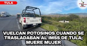 Vuelcan potosinos cuando se trasladaban al IMSS de Tula; muere mujer